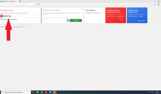 Zobrazí sa okno programu AnyDesk, kde podpore prečítate číslo na ktoré ukazuje šípka.